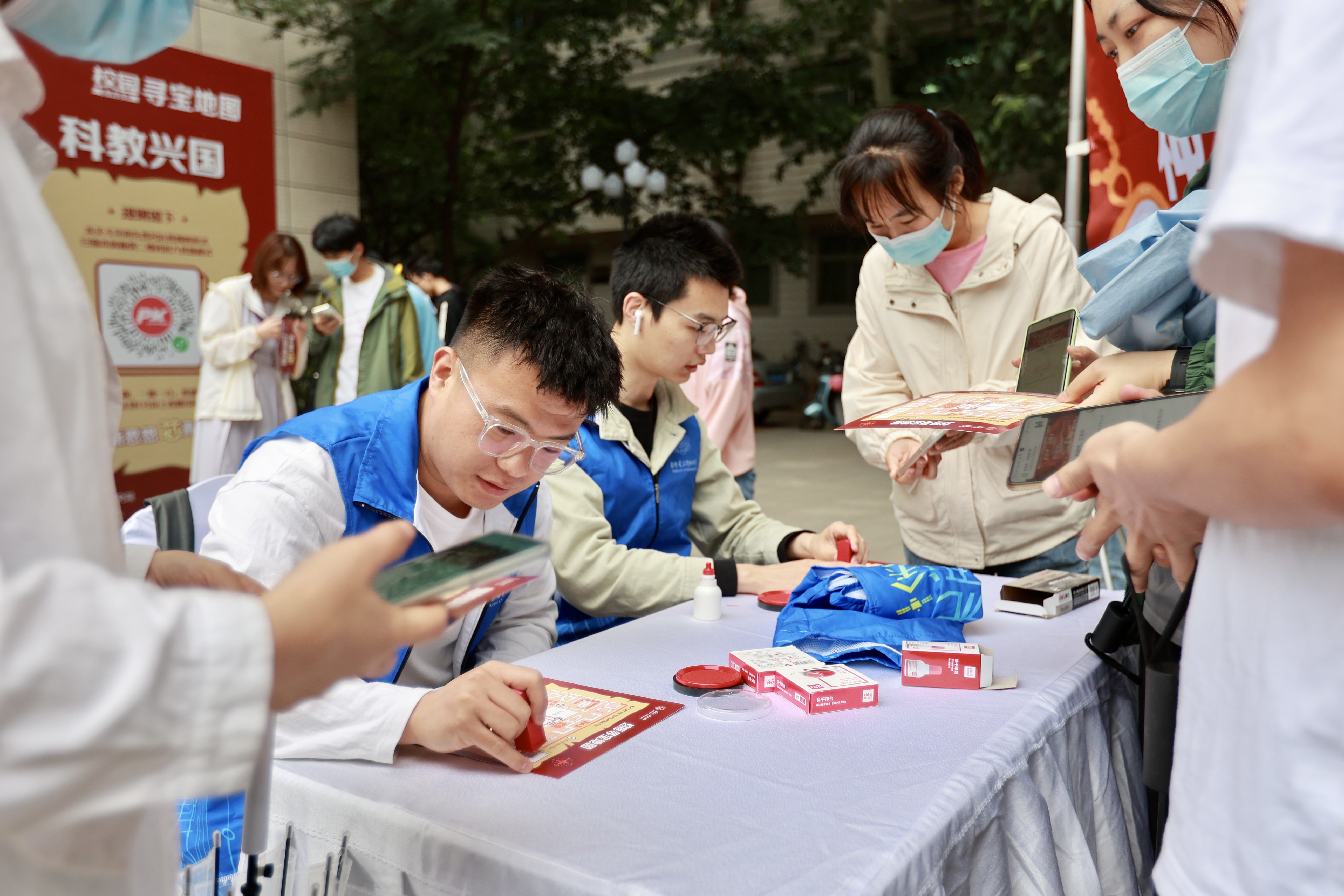“‘理论学习+趣味活动’的形式深入人心、寓教于乐,以赛促学、答题闯关的学习模式让我们有很强的参与感和体验感。”微电子学院博士研究生侯琛雪闯关成功后激动地谈到。新科技楼门前广场处的“科教兴国”分会场异常热闹,活动工作人员有序组织研究生们在“学术诚信墙”上签名打卡,教育广大研究生在科研生活中恪守学术道德与诚信。随后,在场学生通过手机扫码进行知识竞答,“知识竞答”题型以单选题、判断题为主,内容涵盖党的二十大精神、科学家精神、校史校情等内容。参与学生纷纷表示活动趣味性与挑战性并存,丰富了理论学习的形式。