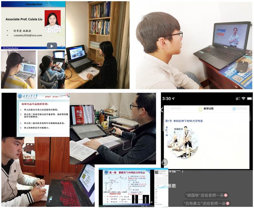 2020年2月24日,开展线上教学第一天,我院要玉宏、吕煜坤、刘翠霞、刘文辉、扈琳、吕煜坤、南瑞华、冯晋阳、宋岩、李炳等14位老师为分布在全国各地的材化学子打响了网上课堂的上课铃声,为学生呈现了开学第一堂网课。老师们准备充分,大家都是多手准备,两到三种平台相结合,讲述流畅、内容设计合理,内容丰富,直播和互动相结合,进展顺利。部分老师在初次使用网上授课方式的情况下都取得了较好的效果,这是老师们在课前辛勤付出的成果。