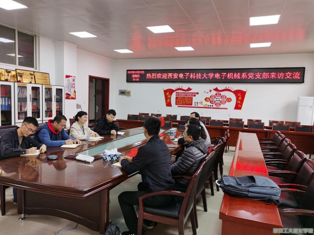 2020年10月15日上午10时,西安电子科技大学电子机械系教工党支部陈永琴一行五人来到我校材化学院党建工作室,与金属材料教工党支部进行交流座谈活动。金属材料教工党支部书记梁艳峰、宣传委员宇红雷及党小组组长、党员代表参加了本次座谈会。