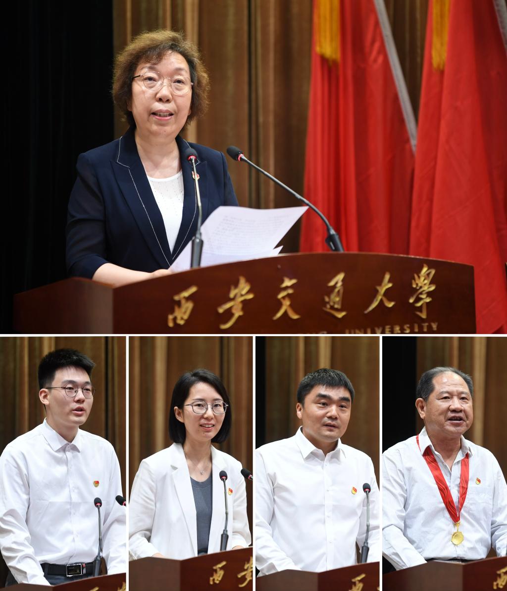 会上,为“两优一先”受表彰代表颁奖,并向“光荣在党50年”纪念章获得者代表颁授纪念章。优秀共产党员代表,中央候补委员、中国科学院院士、能动学院教授何雅玲,电气学院硕2070党支部书记王志飞;优秀党务工作者代表,党委教师工作部师德师风建设主管刘钰新;先进基层党组织负责人代表,口腔医院修复党支部书记牛林;“光荣在党50年”纪念章获得者代表,离退休党委委员、离退休教工一村退休五支部宣传委员白学龙先后发表感言。代表们纷纷表示,将时刻谨记宣誓时的初心,传承弘扬西迁精神,锚定2035年建成科技强国的战略目标,自觉把个人发展融入建设科技强国的伟大事业中,立足岗位实际,不断提升工作能力,为建设科技强国、实现科技自立自强作出更大贡献。