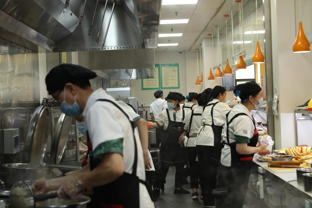 事件:正是就餐高峰期,每个档口都在排队。据食堂经理曾龙说:“C区一楼10个档口,由54名员工负责早中晚三餐供应,我们工作的目标就是让大家吃的安全、健康、美味,有更好的精力去学习、科研。”