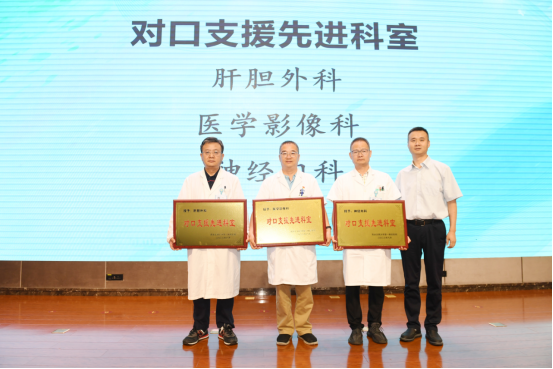 李磊副院长为对口支援先进科室肝胆外科、医学影像科、神经内科颁奖