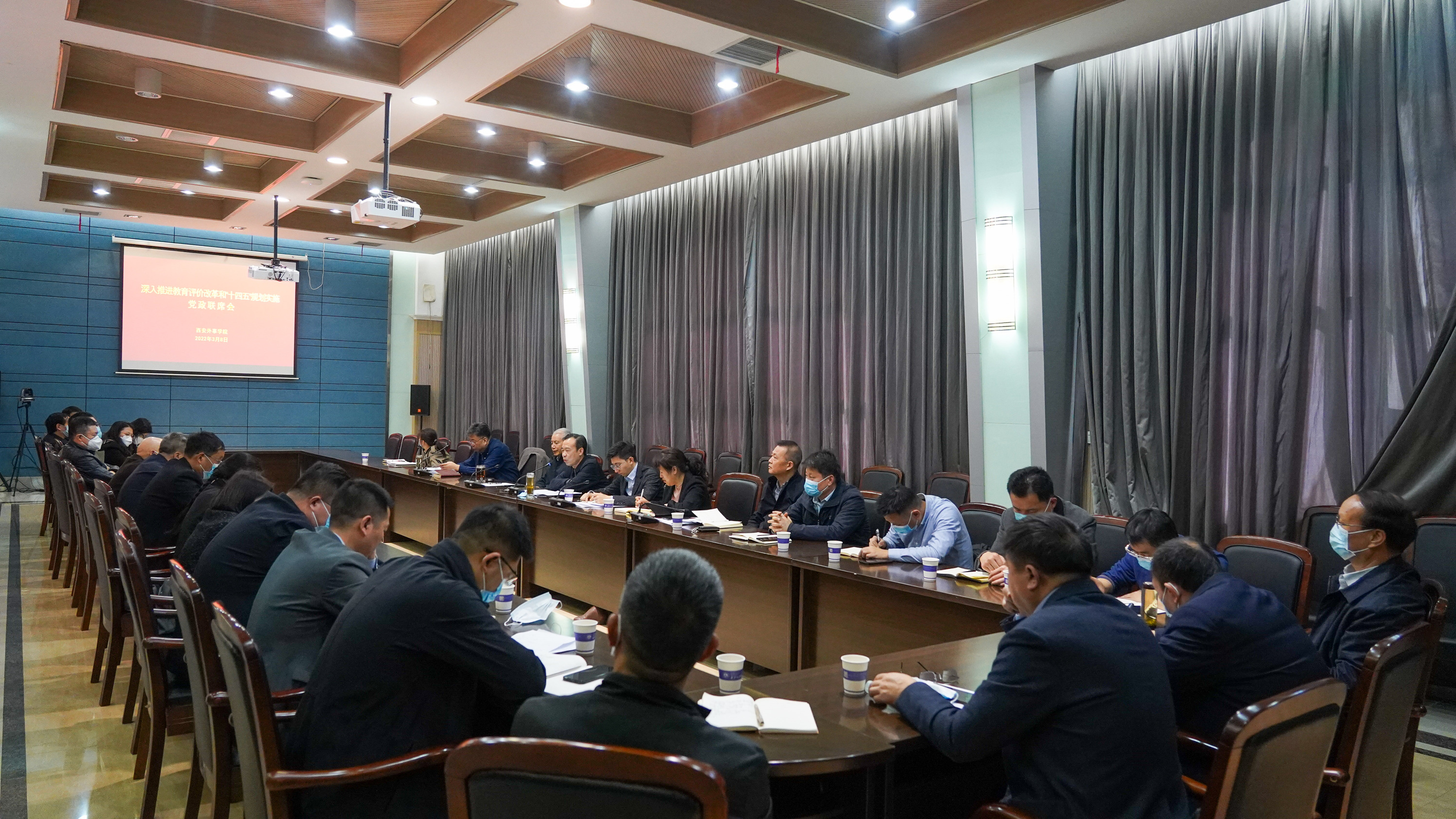 春雷响,万物长。2022年3月8日上午,西安外事学院在西楼五楼会议室召开党政联席会,进一步完善全校监督保障体系,深入推进教育评价改革和“十四五”规划实施,推动学校特色发展和高质量品牌建设。会议宣布和研讨的管理创新改革之举如同一声春雷,将有力促进学校高质量发展。