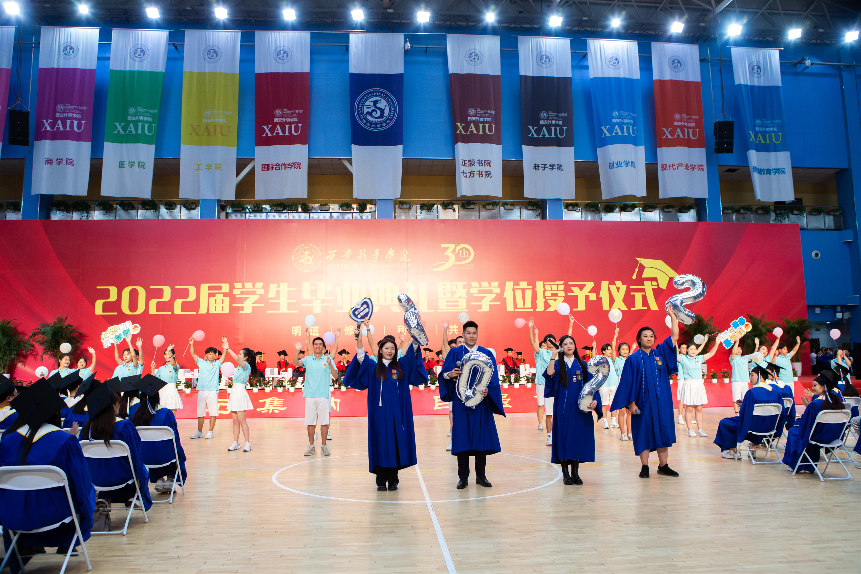 活动中,闵小平书记宣读了《西安外事学院关于准予2022届学生毕业与结业的决定》、《关于授予2022届普通本科毕业生学士学位的决定》、《关于表彰2022届陕西高校优秀毕业生和优秀学生干部的通报》。他希望毕业生带着外事“多元集纳,自强创新”,“爱岗敬业,感恩奉献”的特质,创造美好的明天。