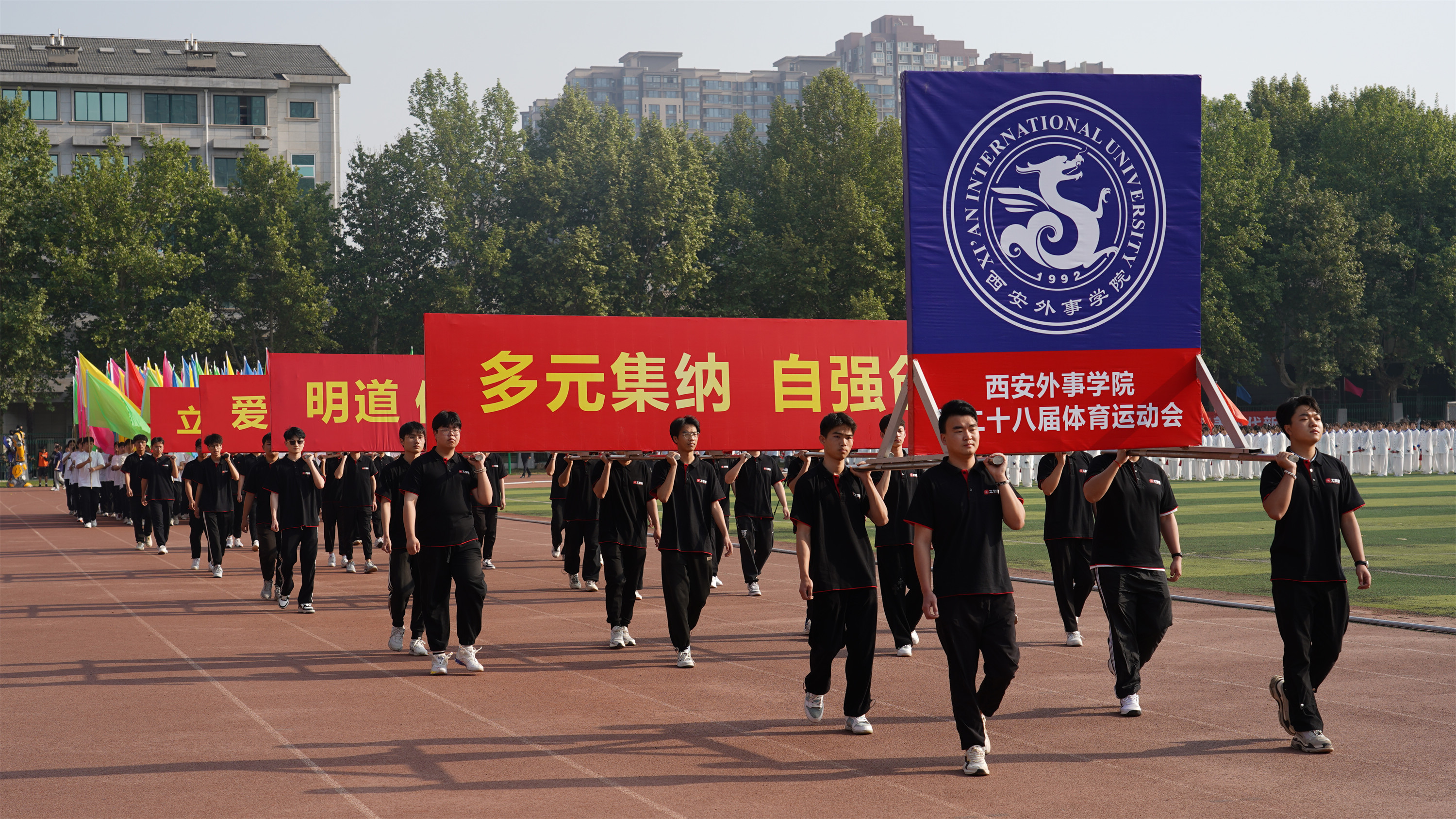 大气磅礴的千人太极扇表演,特色鲜明的各学院方阵入场,英姿飒爽的运动健儿奔驰……2023年4月19日上午,西安外事学院第二十八届体育运动会在南区运动场盛大开幕。同学们在运动场上、在化鱼成龙的路上争做健康幸福的雅乐之人。