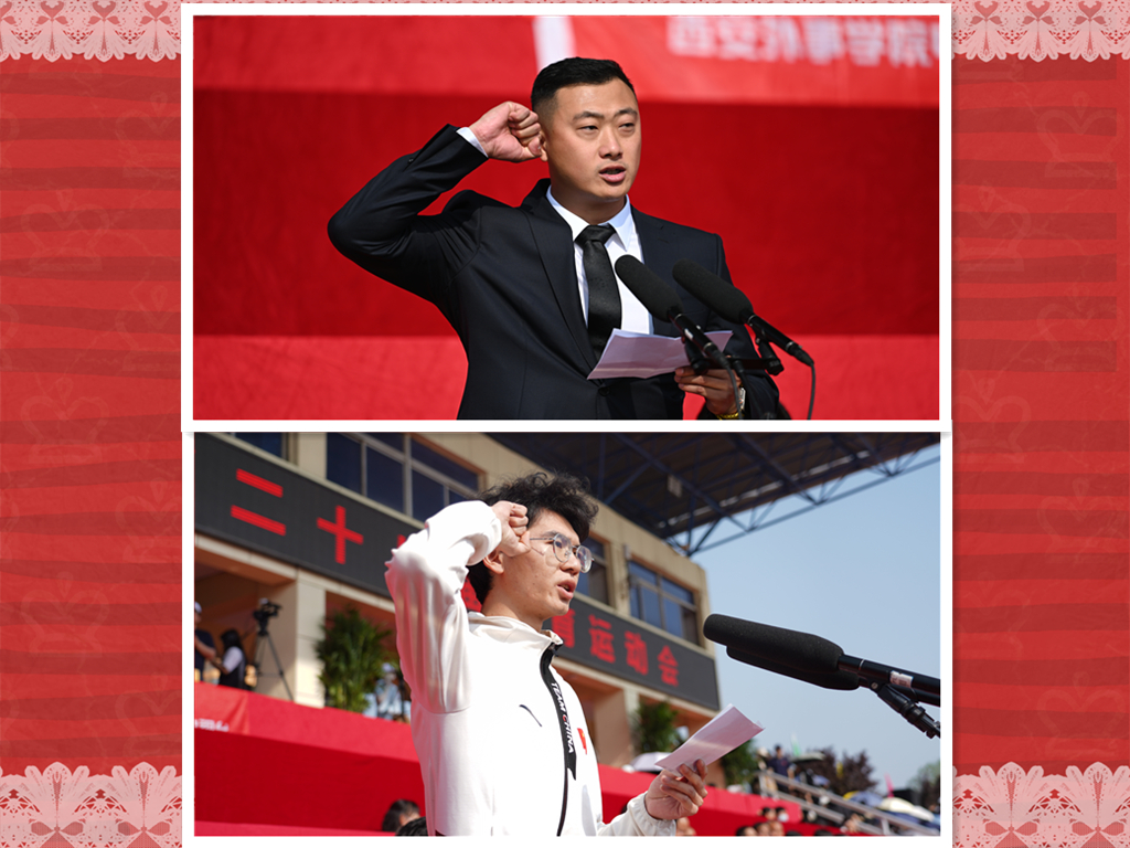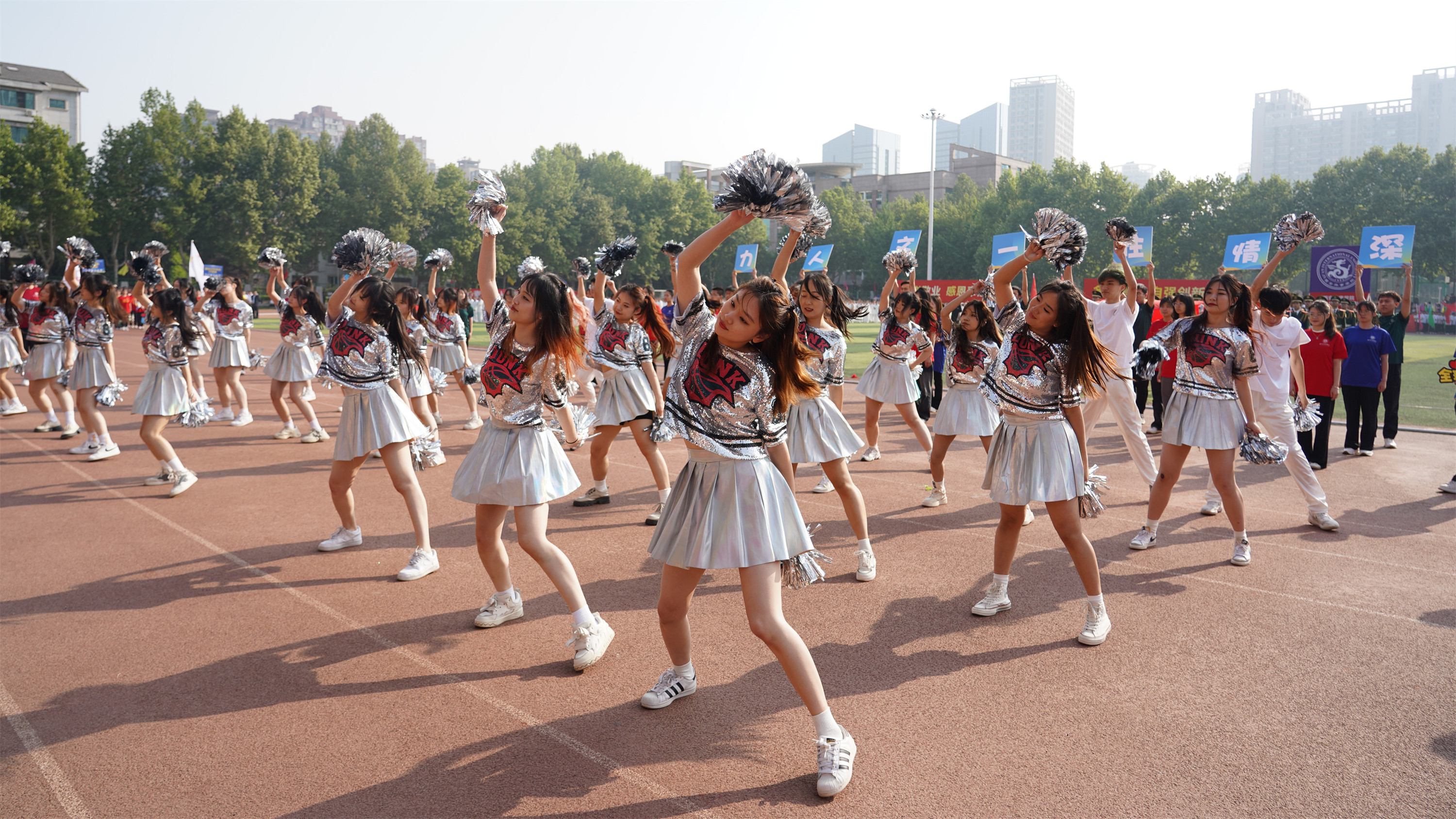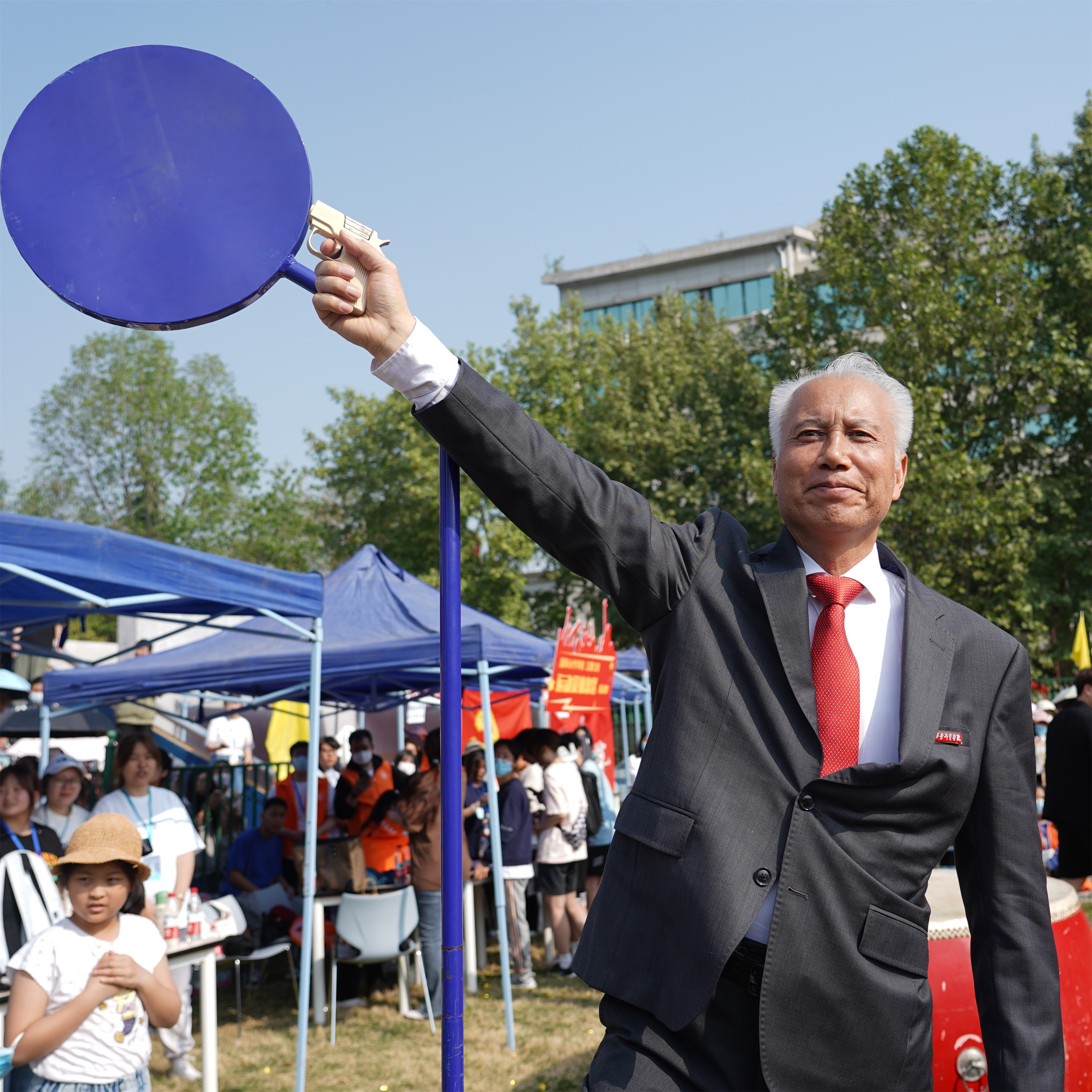 学校理事长、校长黄藤为本届运动会鸣响第一枪。赛场上运动健儿奋勇争先,绽放青春光芒。