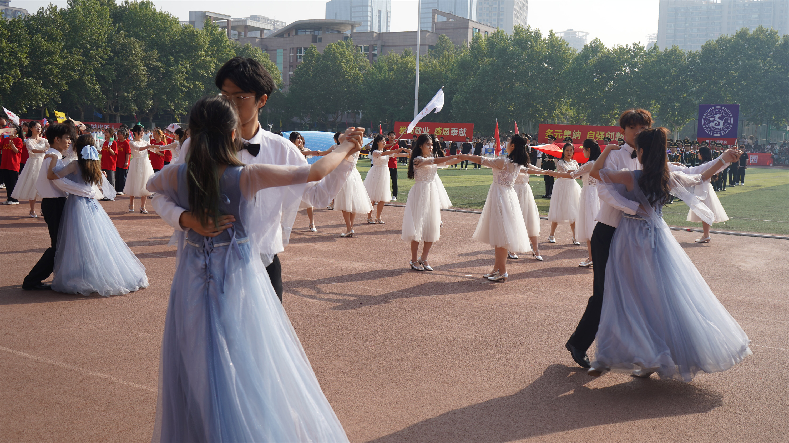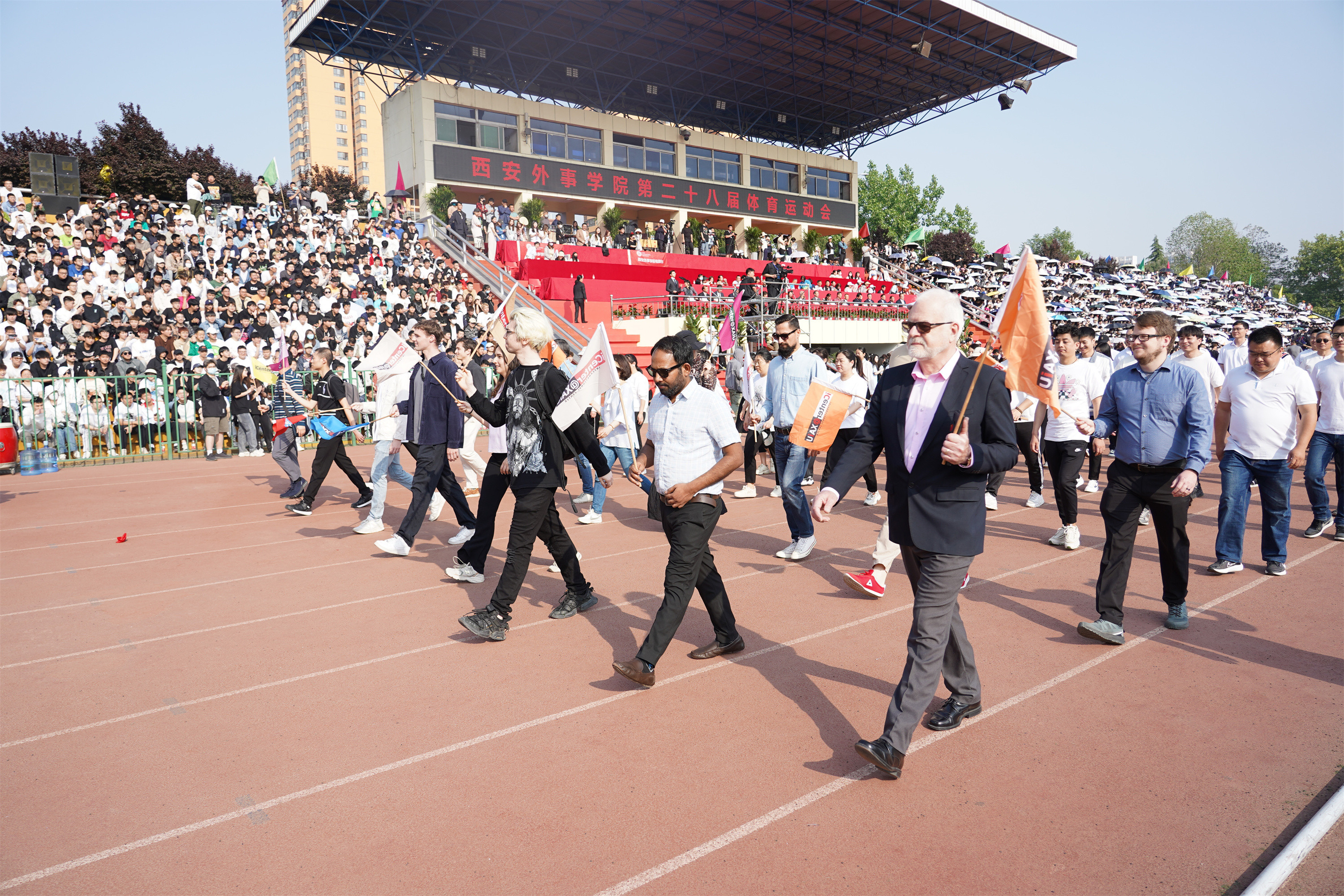 国旗方阵、校徽校训方阵、各学院代表队方阵,依次迈着铿锵有力的步伐入场,坚毅的脚步展现着外事人昂扬向上的精神面貌。商学院的“鱼化龙号”乘风破浪,龙舞翻腾;医学院“愿与吾辈之青春,捍卫盛世之中华”;工学院的Undefined style舞蹈闪烁理工韵律之美;人文艺术学院的现代舞凸显“魅力人文,一往情深”;国际合作学院华尔兹“春之声”、与中国教师一同亮相的外籍教师们,彰显西安外事学院国际化特色。