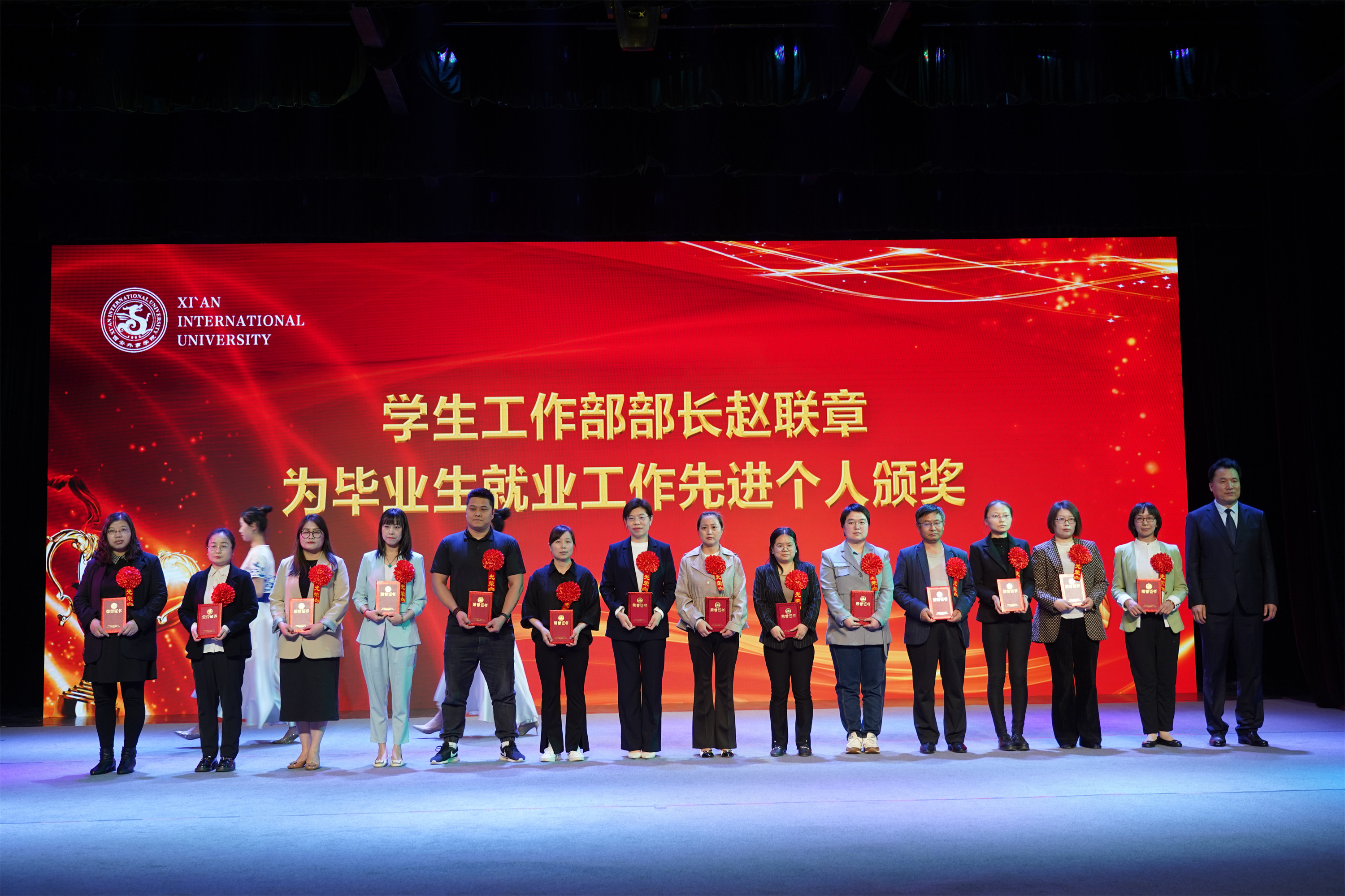 图:学工部部长赵联章为毕业生就业工作先进个人颁奖