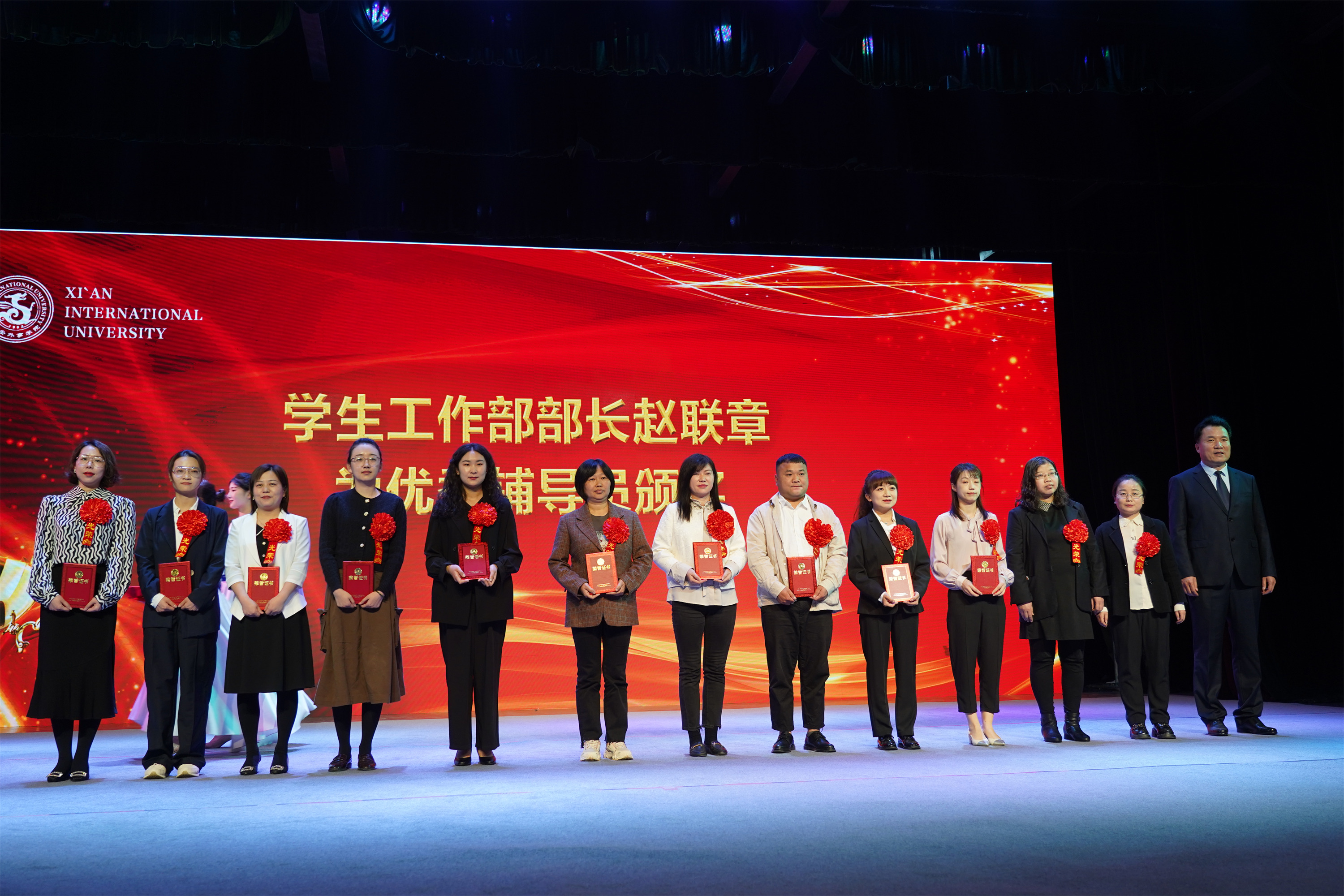 图:学工部部长赵联章为优秀辅导员颁奖