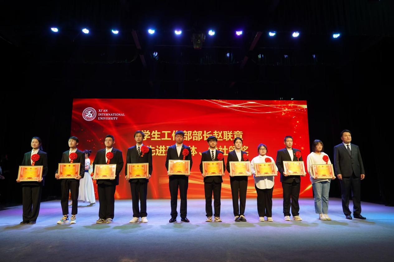 图:学工部部长赵联章为“先进班集体、学社”颁奖