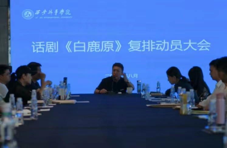 2023年8月30日下午,由西安外事学院艺术中心牵头,人文艺术学院表演系和外事学院话剧团师生在学校图书馆五楼举行话剧《白鹿原》复排动员大会。会上,本次演出的总负责人、学校艺术中心主任邓立鹏传达了学校校长黄藤教授对话剧《白鹿原》复排的指示要求,宣布了学校领导对白鹿原排练及师生管理的相关意见,全面部署排练计划,并对教学、演出、团队建设、个人作风四个方面提出了具体要求。