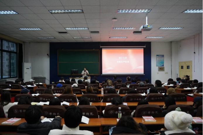 按照教学计划和安排进度,本节《习近平新时代中国特色社会主义思想概论》课的内容是教材第十七章——全面从严治党,郝亚芬老师从理论、历史和现实三维度,通过引经据典、党史回眸和案例剖析,深入生动分析论证了全面从严治党的必要性、迫切性和十八大以来全面从严治党的系统举措,并结合学校从严治党工作实际,使同学们从思维认知和情感认同上增强对于对全面从严治党理论的领悟、觉悟和自觉践行,从而提升课堂教学效果。课堂上学生认真听讲、踊跃发言,老师认真点评,气氛活跃。