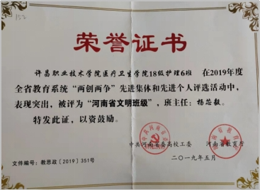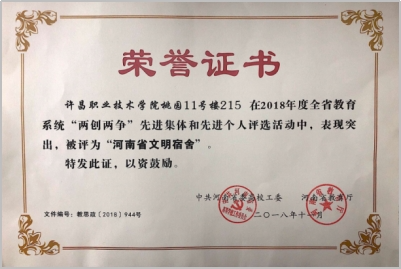 河南省先进班集体、文明班级、文明宿舍获奖情况