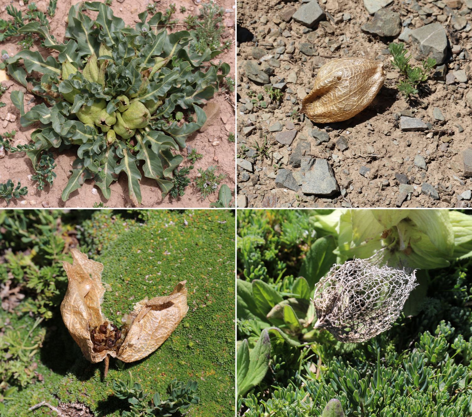 马尿脬(Przewalskia tangutica)是主要生长在高海拔地带的多年生草本植物,该植物的果实外围有一个类似“口袋”的绿色苞片。植物苞片的进化适应机制一直备受植物学家和生态学家的关注,目前研究者们普遍认为植物苞片主要是为了吸引传粉者或者防御植食者,而极少有研究报道涉及植物苞片能够促进种子传播。李登飞博士在川西高原开展野外调查时发现,当马尿脬的果实发育成熟后,其装有果实的“口袋”状苞片会从植株上脱落,随后逐渐失水变得干枯,失水后的苞片也变得更加轻薄,能被风吹到很远的距离。当这个“口袋”状苞片腐烂之后,只剩下一个网脉状框架,无数成熟的种子便从镂空的“口袋”中散落出来,在新的环境中萌发和生长。该发现首次表明马尿脬“口袋”状苞片在种子传播方面发挥了重要的作用,同时促进了该物种的扩散。