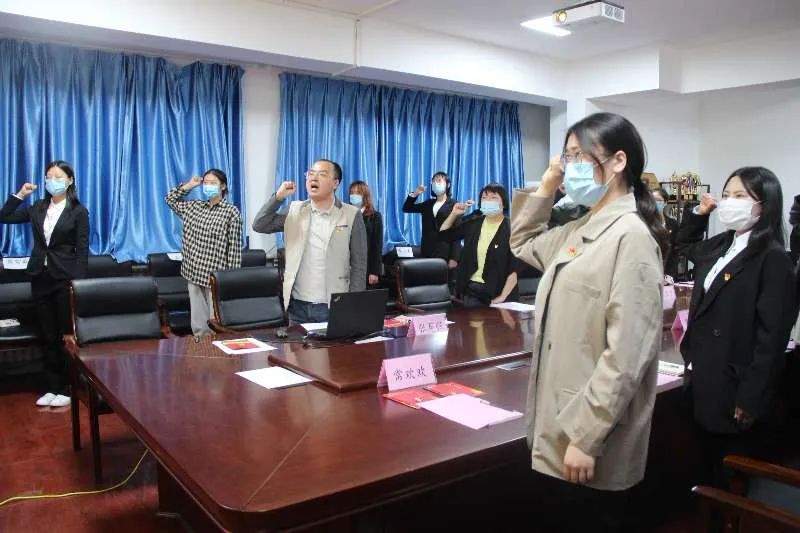 全体与会人员共同观看了红色历史专题片《传奇与使命》,学习革命先烈们艰苦奋斗、百折不挠、不怕牺牲的伟大精神。随后与会党员全体起立,新党员进行了入党宣誓仪式,老党员重温了入党誓词。宣誓完毕后,学院领导、老师和支部书记为新党员佩戴党徽,赠送党章及党员政治生日卡。