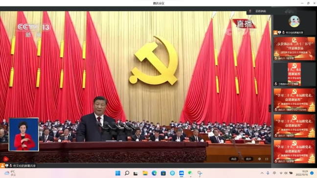 中国共产党第二十次全国代表大会,是在全党全国各族人民迈上全面建设社会主义现代化国家新征程、向第二个百年奋斗目标进军的关键时刻召开的一次十分重要的大会。为深入贯彻党的二十大精神,提高同学对二十大的关注和了解度,新疆财经大学信息管理学院于2022年10月16日上午10时组织全院师生观看中国共产党第二十次全国代表大会直播。