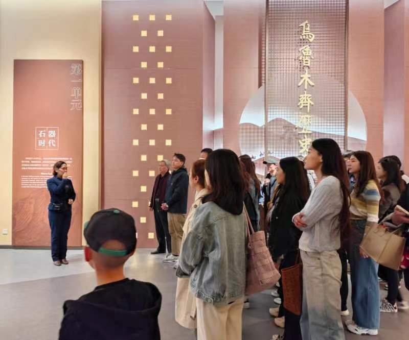 乌鲁木齐“六馆一心”是展现乌鲁木齐城市魅力的一座标志性建筑,“六馆一心”犹如一朵雪莲的六朵花瓣,围绕着花蕊中心文化塔,整个建筑看起来犹如一朵盛开的雪莲,象征着团结、和谐和繁荣。在讲解员的引导下,我们一起进入了乌鲁木齐博物馆,一层为序厅,主题场景从时间和空间的角度,选取历史上具有代表性的建筑及元素,以书画卷轴的形式展现乌鲁木齐历史画卷。二至三层为“乌鲁木齐历史文化陈列”,以通史为轴线,展示从先秦至民国时期乌鲁木齐历史发展变迁。