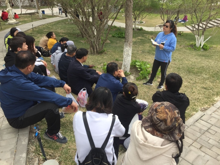 随后大家一边呼吸着新鲜的空气,一边重温着五四先贤的故事,有的党员教师不禁唱起了爱国歌曲,有的党员教师和“三进两联一交友”学生在拍照留念,在大自然中感受生命,感悟人生。到达雅山山顶后,大家,一同欣赏了我们共同居住的城市——乌鲁木齐,领略城市新貌,感受家乡翻天覆地的变化及改革开放巨大历史功绩。再次回到雅山小广场后,裴红娟、沈建刚、翟宇三位党员教师分别讲述了五四先贤事迹,部分老师对发扬五四五四精神进行讨论。