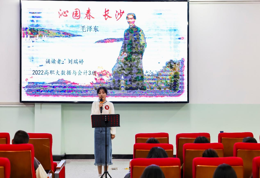 17名参赛选手伴随着优美的背景音乐,用充满魅力的声音吟诵着一篇篇经典名篇。诵读声时而如和风细雨,轻柔绵长;时而如小桥流水,拨动心弦;时而如黄钟大吕,铿锵有力。选手们用真挚的情感诵读出了经典诗文的内涵,给大家带来了一场“璀璨夺目”的视听盛宴。