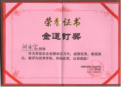自2016年以来,“南方高铁学院”“通昊路桥工程学院”以现代学徒制模式联合培养学生160人,其中 24名学生顶岗实习期间表现优秀,被校企共同授予“金道钉”奖。