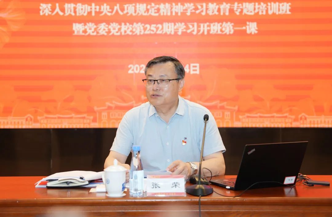 张荣表示,开展深入贯彻中央八项规定精神学习教育,要一体推进学查改,持之以恒抓作风。一要在“学”上求深,着重学习领会习近平总书记关于加强党的作风建设的重要论述,做到学有质量;二要在“查”上求准,对照中央八项规定及其实施细则精神,全面查摆问题,做到查有力度;三要在“改”上求实,抓住主要矛盾,整改突出问题,做到改有成效。他希望全体学员要坚定理想信念,牢记初心使命,养成“强理想、筑根基”的自觉;要带头更新理念观念,强化责任意识,提高服务师生的办事效能,养成“肯担责、敢担当”的自觉;要树立全校“一盘棋”思想,强化团结协作、同向发力,养成“怀大局、顾全局”的自觉;要转变工作作风,主动担当作为,养成“重实干、做实功”的自觉;要常怀敬畏之心,严明纪律规矩,养成“明红线、守底线”的自觉,以作风建设新成效保障一流大学建设行稳致远。