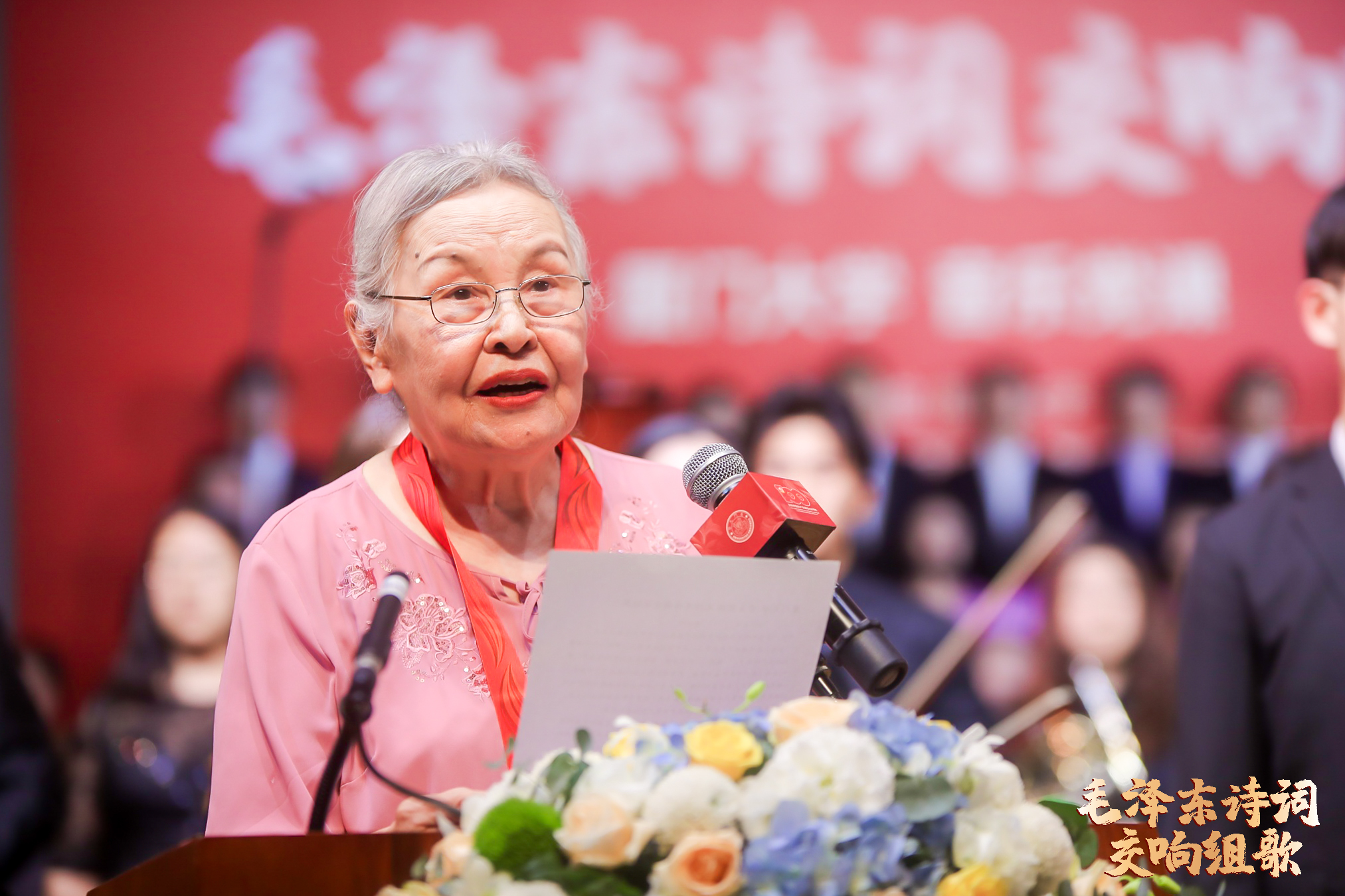 “在庆祝中国共产党成立100周年之际,很高兴与厦大艺术学院合唱团、交响乐团共同举办一堂音乐党课。在场师生通过《毛泽东诗词交响组歌》,学习伟大领袖毛主席的革命初心,歌唱中国共产党的百年辉煌。今天,相信在我们深入了解百年党史后,一定能更好地增强开拓前进的勇气和力量。” 音乐党课伊始,郑小瑛动情说道。