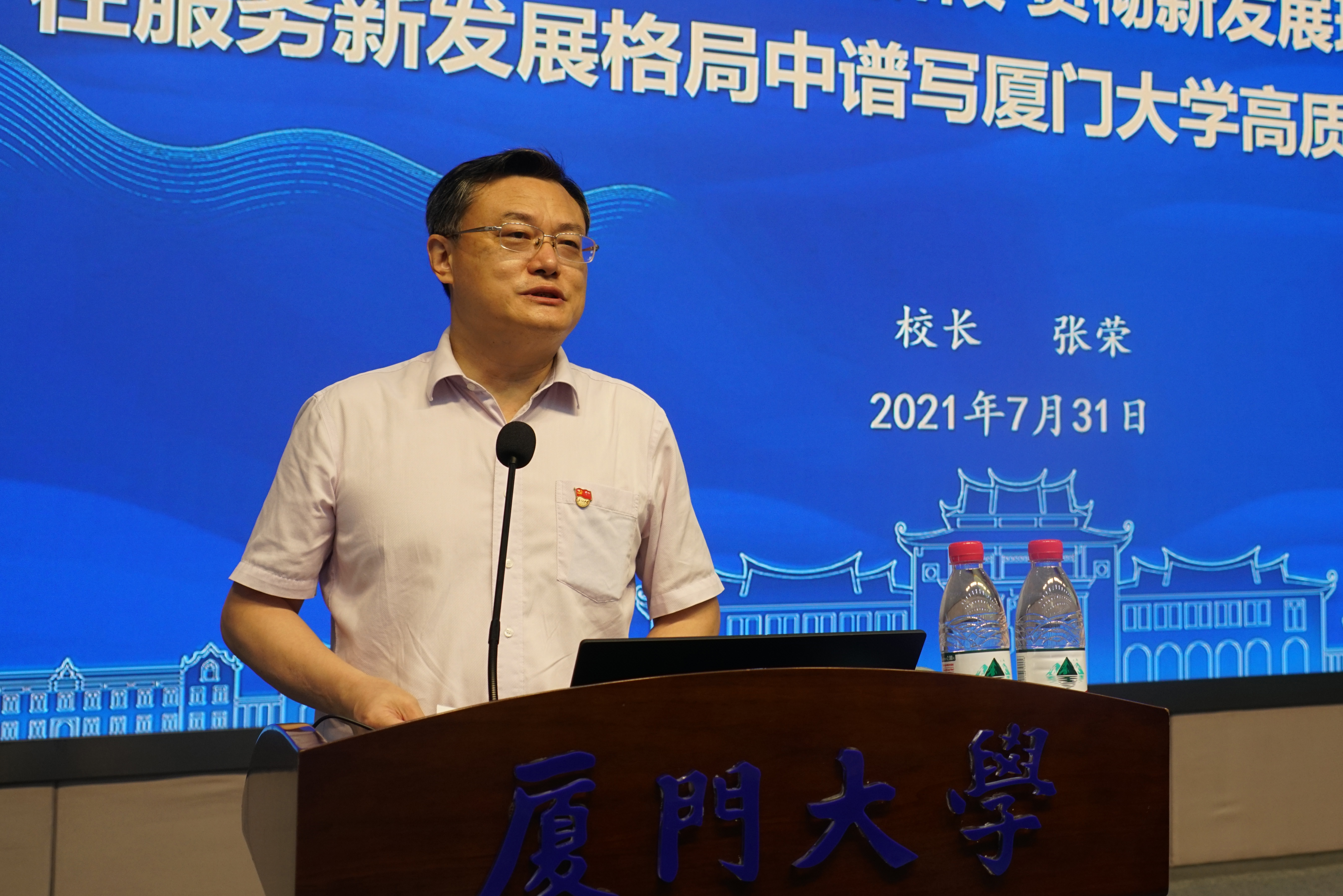 校长张荣作题为《立足新发展阶段 贯彻新发展理念 在服务新发展格局中谱写厦门大学高质量发展新篇章》的主题报告,深入分析高等教育和学校面临的形势与任务,系统阐述新时期一流大学的时代内涵,提出我校新百年建设发展的思路举措。