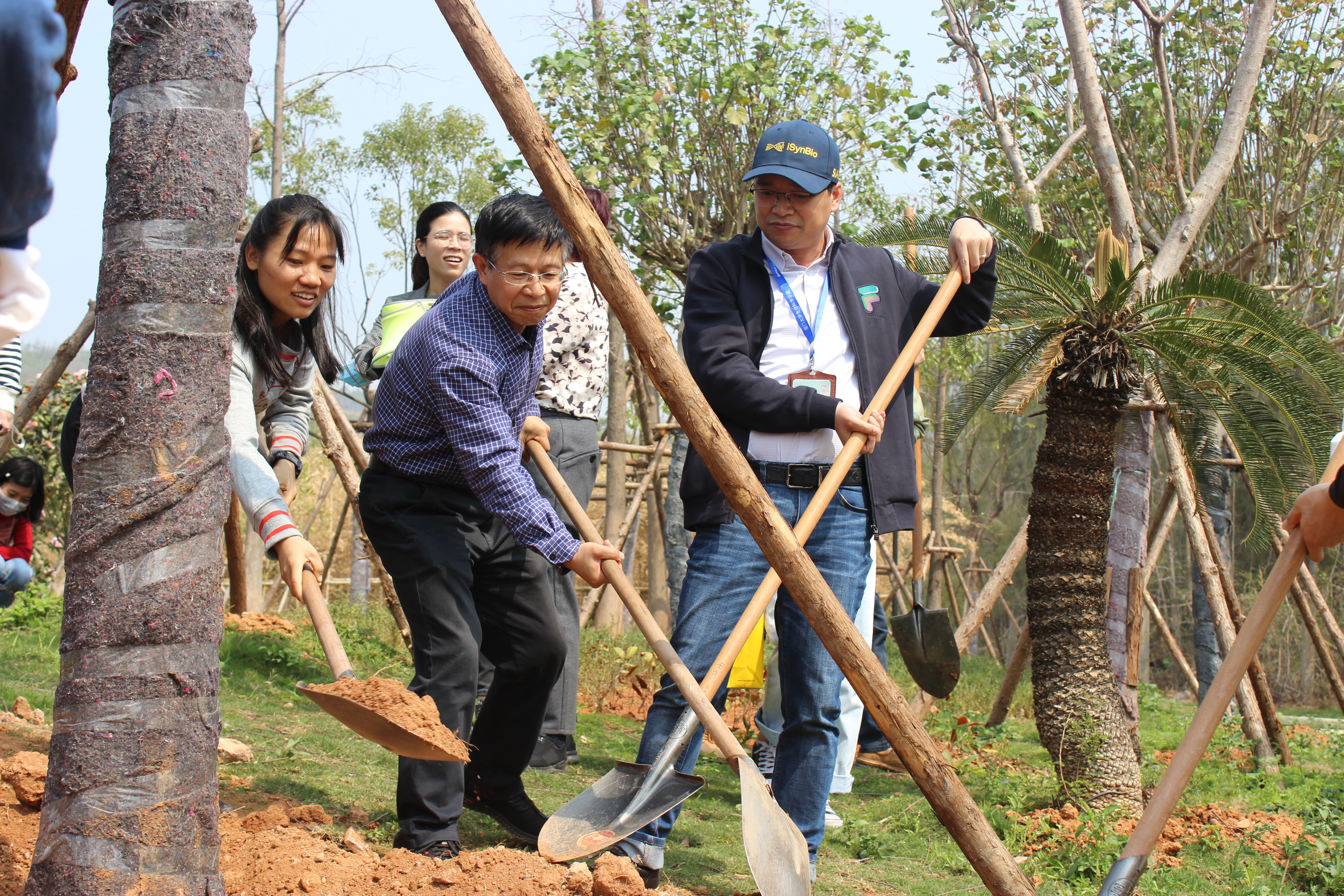 春日里艳阳高照,植树现场更是一片热闹的景象。三十多名生科师生在八闽园中撸起袖子、齐心协力,为刚种下的树木培土、除草、浇水,每一个动作都充满着对树苗茁壮成长的期盼。为实现“栽一株,活一株;栽一片,成一片”的目标,师生们用力挥舞着锄头、干劲十足。