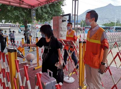 弘扬无私无畏抗击疫情。在面对突如其来的疫情,建立常态化疫情防控排班制度,组织支部党员积极投身学校、社区的抗击疫情志愿者工作中。支部党员踊跃报名,快速形成抗击疫情有力的队伍。先后开展了“凝心聚力,共克时艰”,坚决战胜疫情、《让党旗在防控疫情斗争第一线高高飘扬》、《打赢疫情防控阻击战》等党课学习、高校基层党组织常态化疫情防控 “四个一”行动、带头做好疫情防控工作落实好防疫期间线上教学的正常运转、学习习近平总书记在统筹推进新冠肺炎疫情防控和经济社会发展工作部署会议上的讲话精神、“践行初心使命,坚决战胜疫情 ”等活动,为校园安全、社区安全提供了有力保障。从2020年初疫情开始至今,实现支部党员100%社区双报到,全员参与学校、社区疫情防控,其中黄继贤老师每年参加疫情防控志愿者活动10多次。