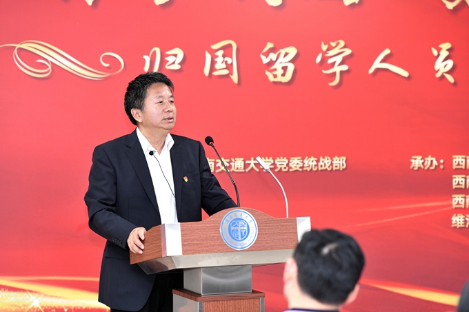 为庆祝建党100周年,切实深化党史学习教育成果,为师生办实事,引领广大师生传承交大精神,凝聚奋斗力量, 5月23日下午,西南交通大学党委统战部主办,利兹学院党总支、学校侨联、学校欧美同学会、维清励行工作室共同承办的“留学报国 复兴交大”归国留学人员分享会在犀浦校区举行。学校党委统战部部长卢世炬、利兹学院党总支书记江久文、利兹学院教师党员、学生党员和入党积极分子、学校相关学院同学等90余人参加了此次分享会。