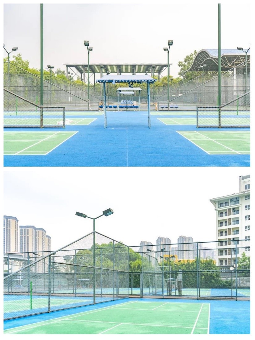 4、为改善学校体育教学环境,提升体育教学品质,丰富师生课余生活,对犀浦校区网球场进行改造,新建有盖场地2处,无盖场地2处,同时对羽毛球场地进行改造。
