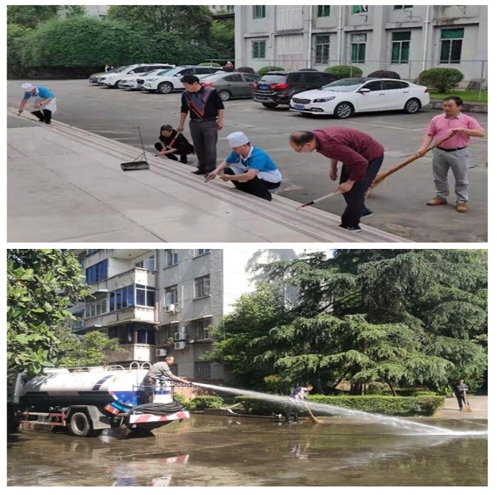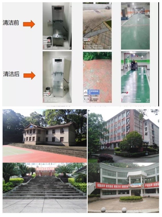 5、峨眉校园、家属区环境整治。峨眉校区潮湿多雨,青苔繁殖快,导致地面湿滑,为清除严重的安全隐患,确保师生安全、正常通行,对地面青苔进行整治。