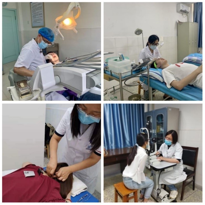 以校医院外科、内科、中医理疗科、口腔科及眼科为主,为全校师生免费提供基本检查、拟定诊疗计划、初步治疗等医疗服务。