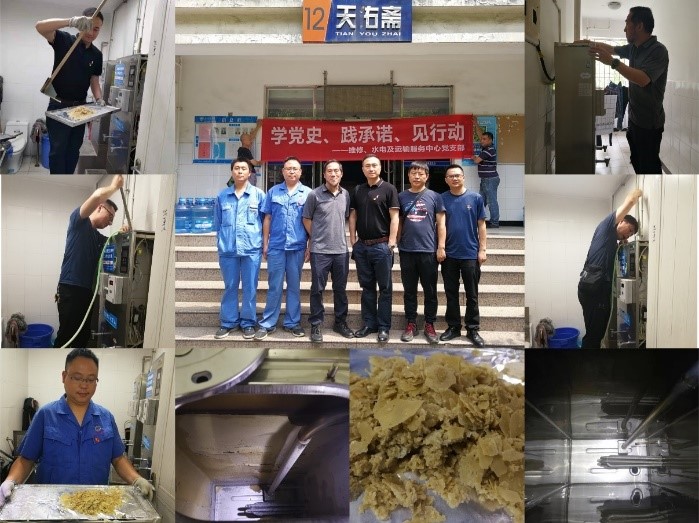 集中对犀浦校区鸿哲斋6、7号楼和天佑斋11、12、13号楼的10余台开水器进行除垢及全面清洗。