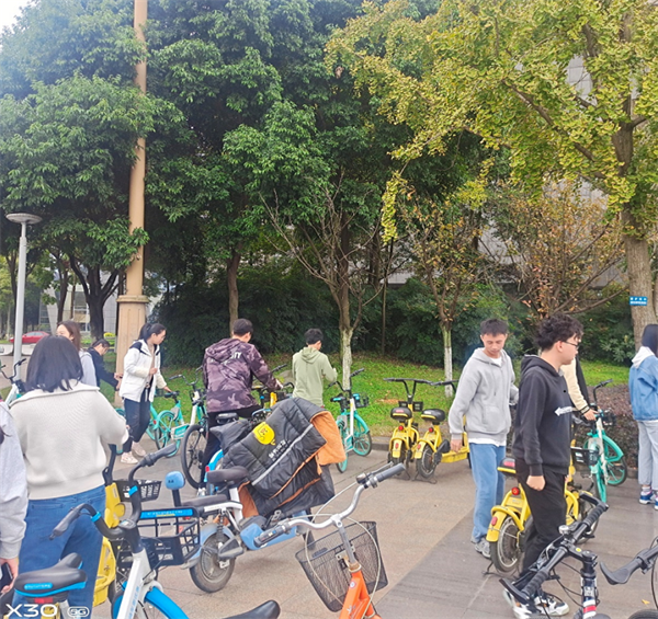 共享单车使得同学和老师们去教室和图书馆更加便捷,节省下更多的时间学习,但是由于校内对自行车的摆放位置没有太多的划分,因为在图书馆和九教下的自行车摆放杂乱无章,甚至造成道路堵塞,对师生产生极大的不便,造成一定的困扰;我们两个支部积极组织支部成员开展对图书馆和九教楼下的自行车进行摆放,更加方便身边师生,解决道路拥塞的问题。