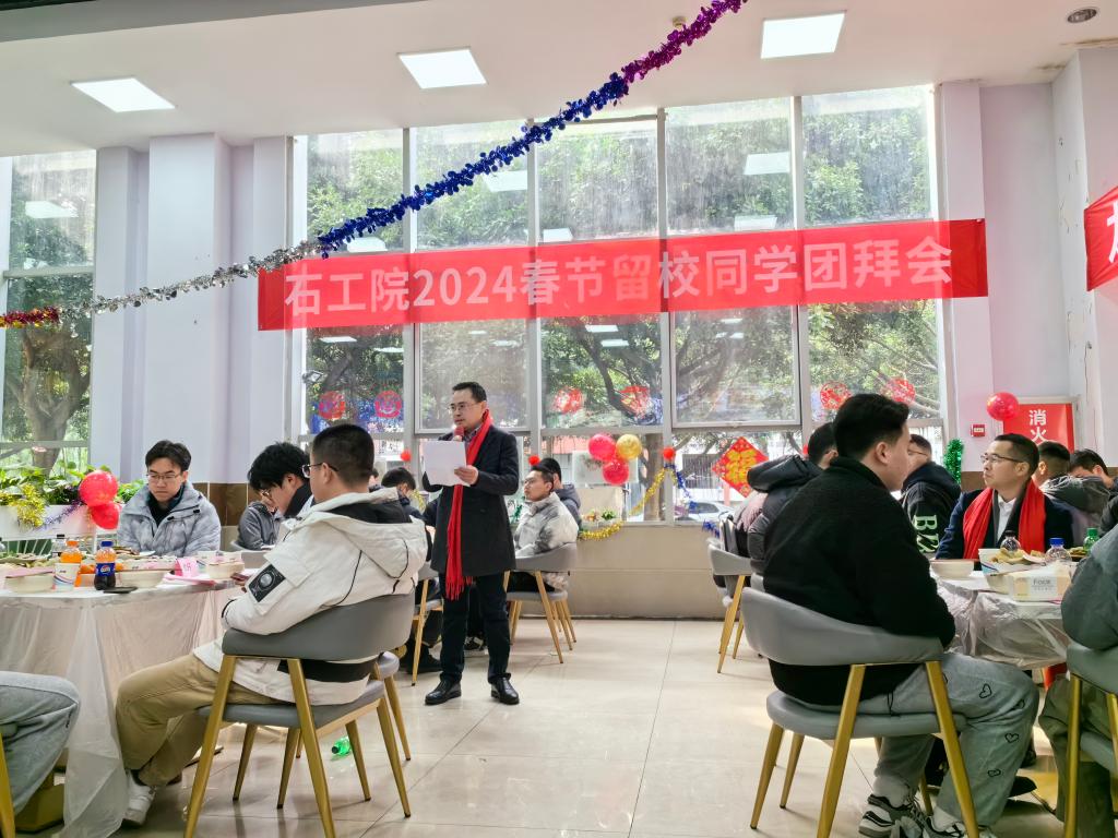 团拜会上,张智向参加团拜会的师生致以诚挚的节日问候和美好的新春祝福。他向同学们分享了过去的一年中学院取得的成果,并表示希望同学们在新的一年里以龙腾虎跃的雄风,生龙活虎的干劲,展现石工学子的龙马精神,用青春奋斗续写靓丽新篇章。院领导为同学们送上新年祝福红包,与来自五湖四海的留校学生举杯共饮、互祝新春,共同享用丰盛的午餐,让留校学生也能感受到家的温暖、年的味道。