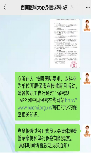 经过集中学习及个人自主学习,全科党员干部深刻认识到保密的重要性,掌握基本的保密知识,在实际行动中践行保密工作。