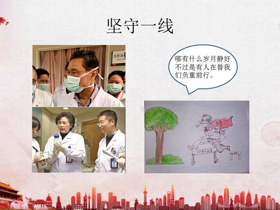 我自豪于祖国的强大与风范。钟南山院士说,在汇报疫情后的第二天,国家就立即采取了行动,“围堵”武汉、进行全国群防群治、疫情数据透明以及实施个人检测,这些硬核的防疫手段使我一次又一次地被安全感所笼罩。在这场与病魔的生死竞速中,国家奉行以人为本的思想,下令建设抗疫医院并免费为感染者治疗,仅仅历时13天,雷神山医院就已经开始收治患者,雷动九天人为山,我惊叹于中国制造的速度。道不远人,人无异国,疫情无国界。中国率先完成本土疫情阻断,又扛起世界抗疫大旗,向全球百余国家援助物资,这是大国担当,更是大国风范。