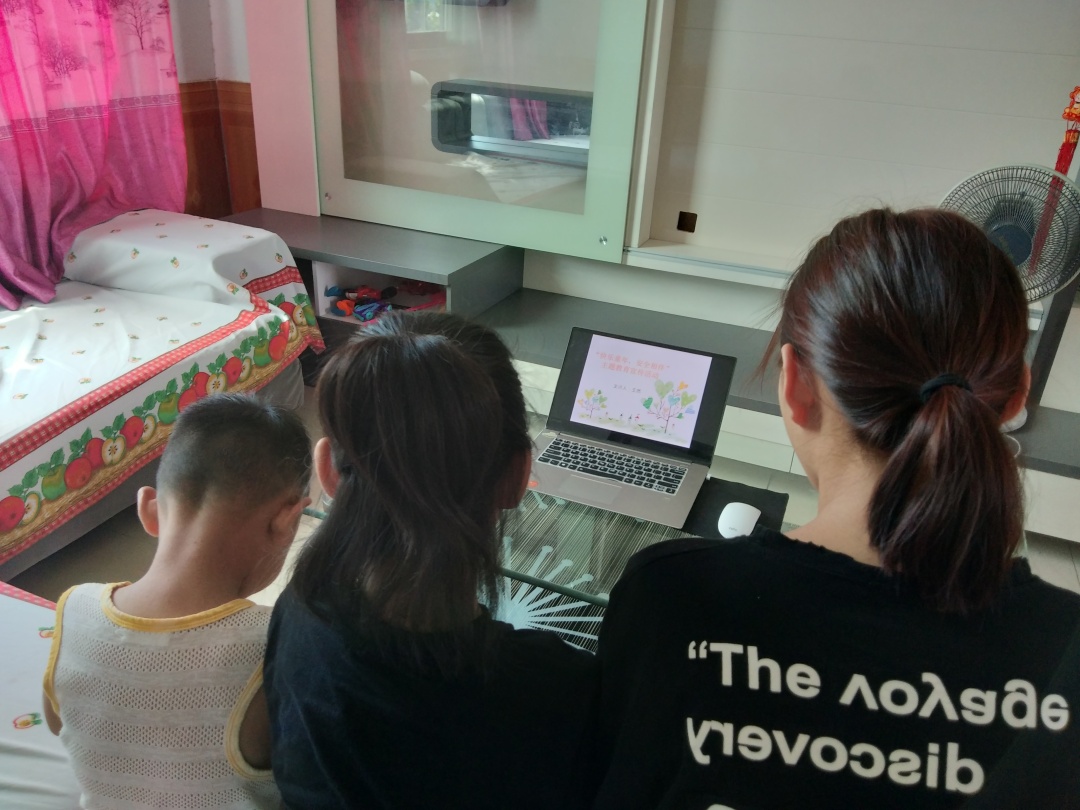 (图为贾桂花同学对河南省许昌市襄城县常贾村统一AI智能教育辅导班同学开展关注留守儿童心理健康教育活动)