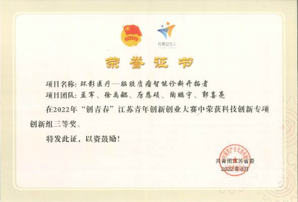[2] 2022年8月 “创青春”江苏省青年创新创业大赛三等奖