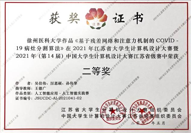 [4] 2021年5月 江苏省大学生计算机设计大赛二等奖