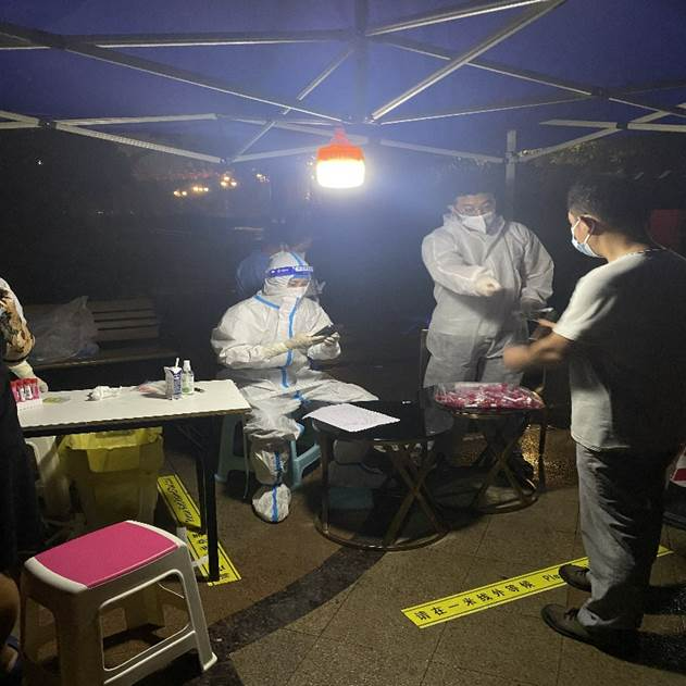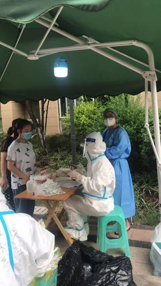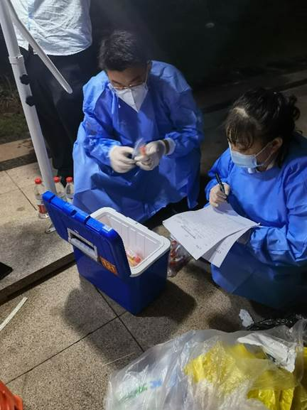 每天凌晨4:30,他们的工作就开始了,在医务工作者的指导下穿上防护服,协助开展核酸检测工作。每天他们都要协助医生为华彩城社区的居民进行核酸检测,人员信息核对只是他们工作的一部分,同时还要维持疫情防控秩序,及时给核酸采样管贴标签、袋装与消毒,清理各种医疗垃圾。虽然每天的工作很辛苦,但他们觉得很快乐,尤其是看到全社区做完核酸检测的那一刻,再多的汗水也值得。作为一名共产党员,他们时刻牢记使命,不忘初心,勇于担当,主动作为,发挥了党员的先锋模范作用。