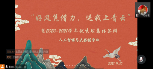 为加强班风、学风建设,“凝心聚力,团结协作”为学部营造良好的氛围,11月10日,人工智能与大数据学部2020-2021学年度“好风凭借力,送我上青云”优秀班集体答辩会以线上答辩的形式隆重举行。林文娇、许炜萍等教师党员及班主任老师组成的评审小组与各班亲友团一起参加了此次答辩会。