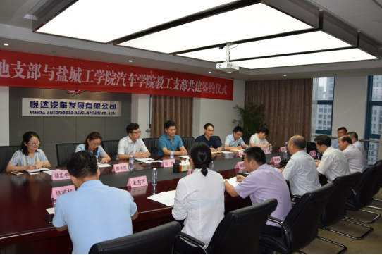 6月24日下午,学院党总支书记张雷、支部书记刘玮、副书记熊永莲,副院长熊新及部分支委党员共七人到访悦达新能源电池有限公司(以下简称“悦达新能源电池”),隆重参加双方单位“校企合作、党建联建” 十四五汽车零部件发展研讨会暨悦达新能源电池与盐工汽车学院教工支部共建签约仪式。党委书记,董事长柳忠民,纪委书记杜旭东,陈剑支部书记,党委委员悦达东方部件总经理周俊明,台玻公司总经理吴英华,总经理助理朱雪芹,财务总监邓正宏,悦达新能源电池行政总监沈佳伟一同参与对接。