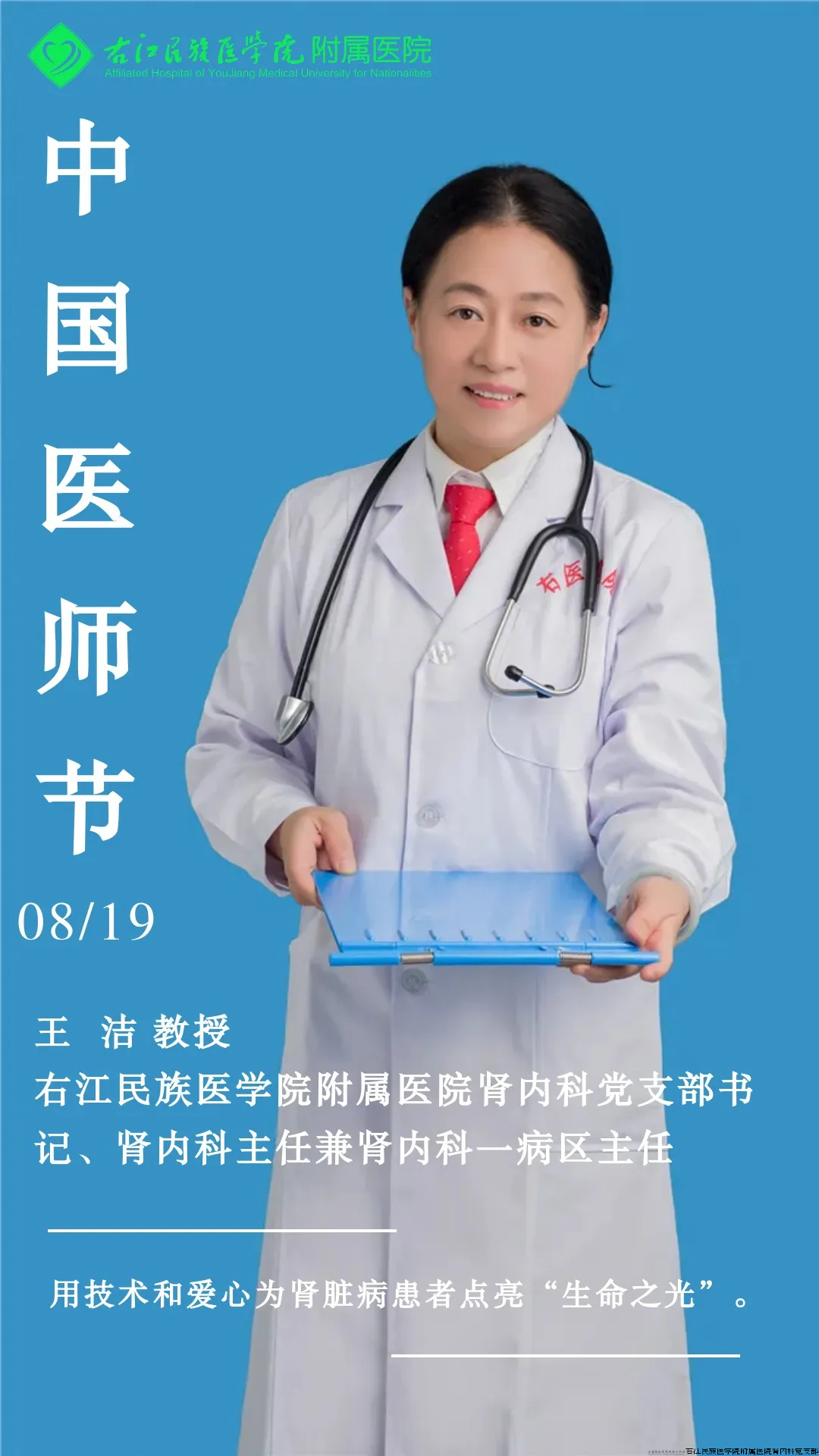 【中国医师节】专家风采 | 右医附院肾内科主任兼总院区肾内科一病区主任王洁教授