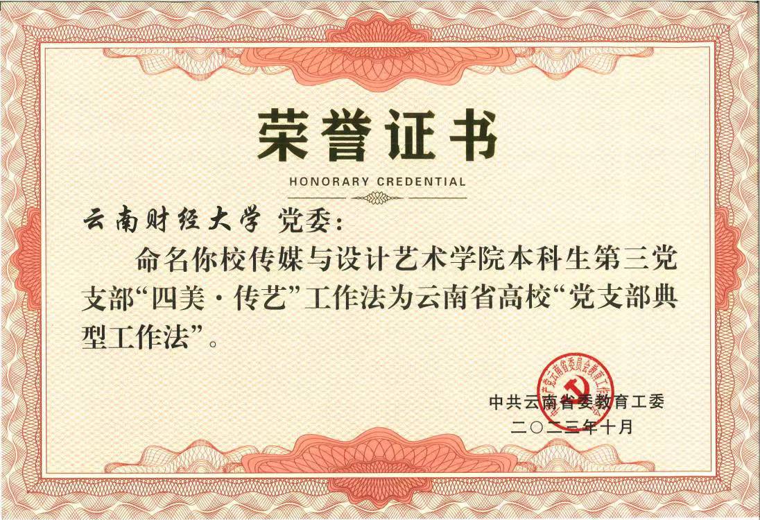近年来,传媒与艺术设计学院党委坚持党建引领,突出艺术设计与新闻传播专业优势,探索构建“党建+专业+美育”工作模式,持续打造“艺马当先”党建内核,通过建好“专业链”,让以美育人“扎根”;通过优化“服务链”,让以美育人“落地”;通过创新“传播链”,让以美育人“发声”,推动“一融双高”要求在学院落地生根并开花结果。传媒与设计艺术学院本科生第三党支部通过探索建立以“党建+美育”为引领的学生党员教育载体与路径,深入实施“学美”强基、筑牢传艺根基,“赏美”共融、探索传艺真谛,“画美”润心、擦亮传艺名片,“创美”实践、淬炼传艺梦想的“四美•传艺”工作法,创造性结合当前国家时政热点和地方经济所需,既融入国家战略发展,又服务地方经济发展和基层群众所需。近几年来,支部陆续推出《抗疫上河图》《手绘多样云南》《绘征程•心向党》等6组手绘长卷,被新华网、人民网、“学习强国”等主流媒体报道和转载,支部获评教育部第三批全国党建工作样板支部、云南省首批云岭先锋红旗党支部、云南省高校一流党建示范党组织和规范化建设示范党支部。