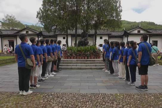 团队成员在基地老师的讲解下了解朱毛会师后的奋斗事迹,面对毛泽东故居的一面残墙,真切感受到那段艰苦的革命岁月。看到每个屋子的内部布局,队员们不禁感慨红军“官民平等”策略的伟大。
