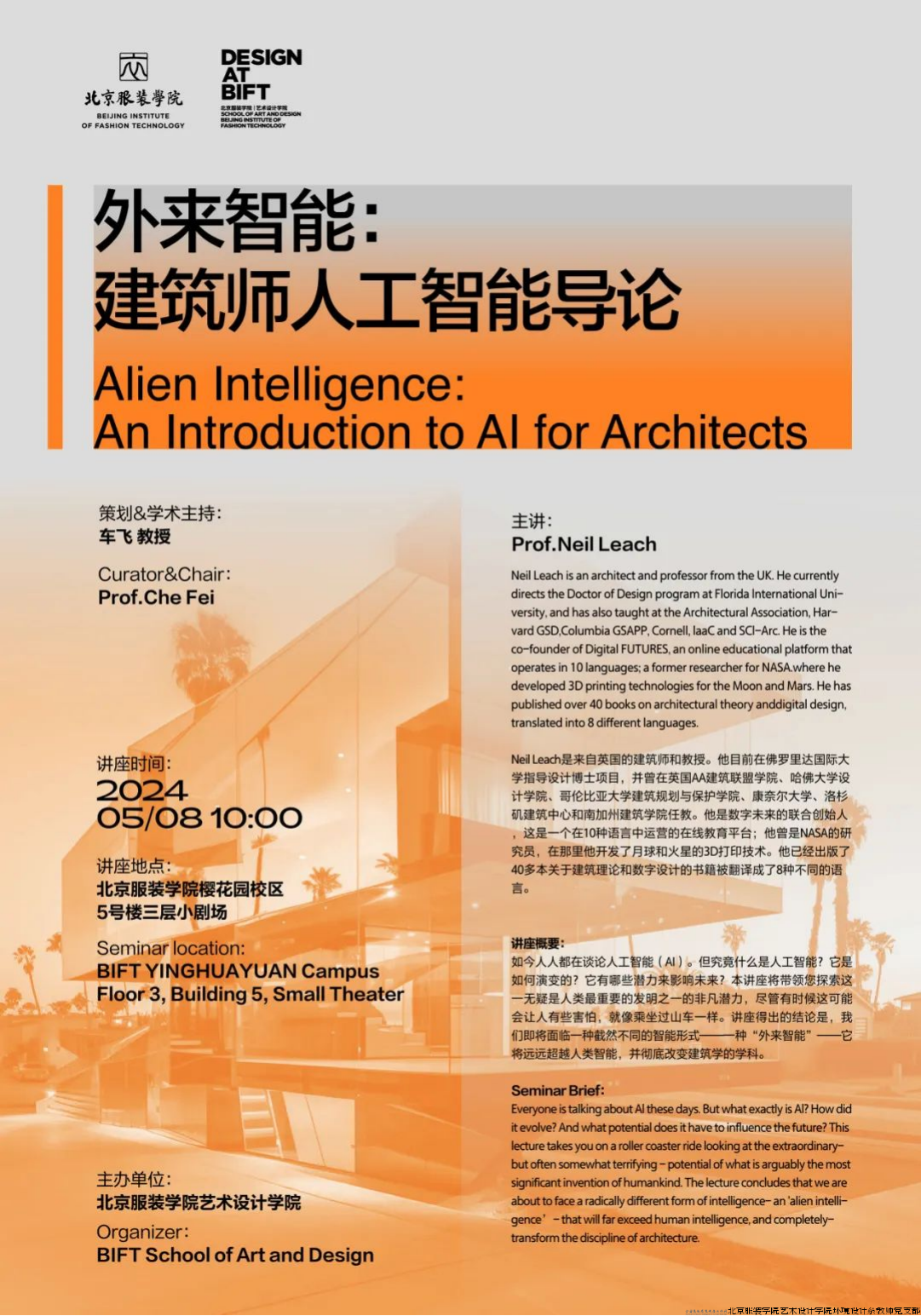 北京服装学院艺术设计学院邀请尼尔·林奇教授(Neil Leach)在北京服装学院综合楼三楼小剧场举办“外来智能:建筑师人工智能导论”学术讲座。