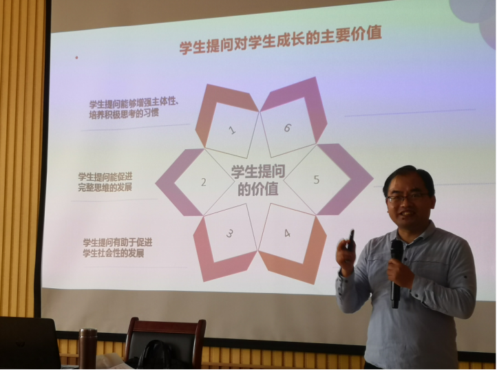 本次活动第一阶段,集体观摩了崔海迪老师执教的《认识长方形和正方形》“生问课堂”课,课上教师以学生自己提出的问题,引领学习、推进教学,让听课者感受到了“生问课堂”的魅力。课后,项目主持人、小学数学教研专家张良朋结合课例进行了深度点评,并为全体与会人员作了题为《“生问课堂”中的“问题”》的专题讲座。讲座围绕小学一线教师在生问课堂教学实践中的问题,从问有何用、问从哪来、问之应对等方面进行了深入浅出的剖析,为接下来的教改教研提出了中肯的建议。