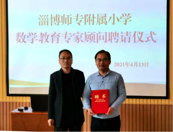活动的最后阶段,举行了数学教育专家顾问聘请仪式。淄博师专附属小学聘请张良朋老师为教育专家顾问,为数理系和师专附小开展小学数学深度联合教研吹响了“集结号”。